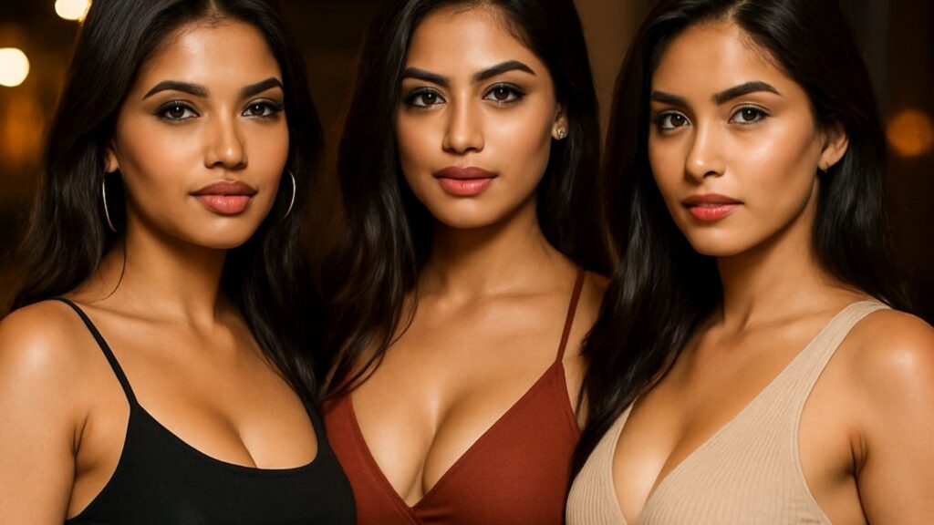 త్రిష నా చేయి పట్టుకుని రూమ్ లో కి తీసుకు వెళ్ళిపోయింది. దివ్య ఒక చేత్తో సిగరెట్ మరియు బీర్ బాటిల్తో ఐపోయింది. త్రిష దివ్య గదిలోకి ప్రవేశించారు. త్రిష నన్ను ముందు నుండి ముద్దు పెట్టుకుంది మరియు దివ్య వెనుక నుండి కౌగిలించుకుంది. త్రిష – ఫక్ మీ రా లంజా కొడకా. నన్ను ఫక్ చేయండి.